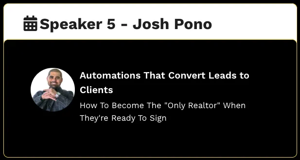 12:55 - 1:45 - Josh Pono - Do more business with less work - Automations and workflows that bring you buyers and sellers regularly