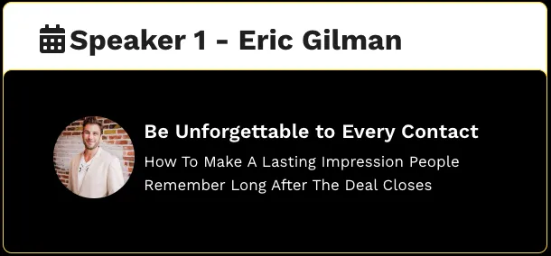 10:15 - 10:30 - Eric Gillman - Build a lasting impression and stay top of mind with everyone you meet.