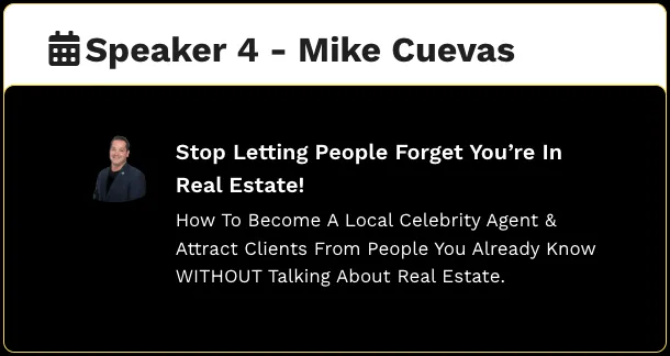 12:05 - 12:50 - Mike Cuevas - Stop Letting People Forget You’re In Real Estate: How To
